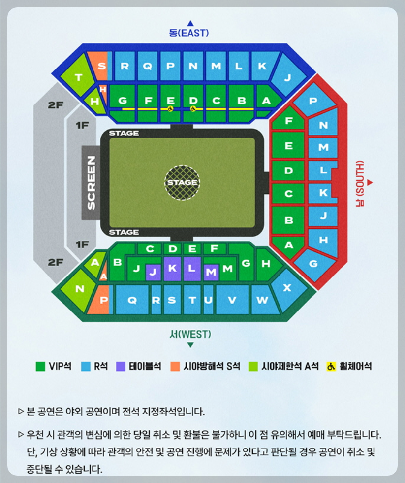 - 공연당일 서울월드컵경기장 일찍 만차예상으로 주차창이용이불가(장애인석(휠체어석) 공연장 내에 위치한 장애인 주차공간 사용가능